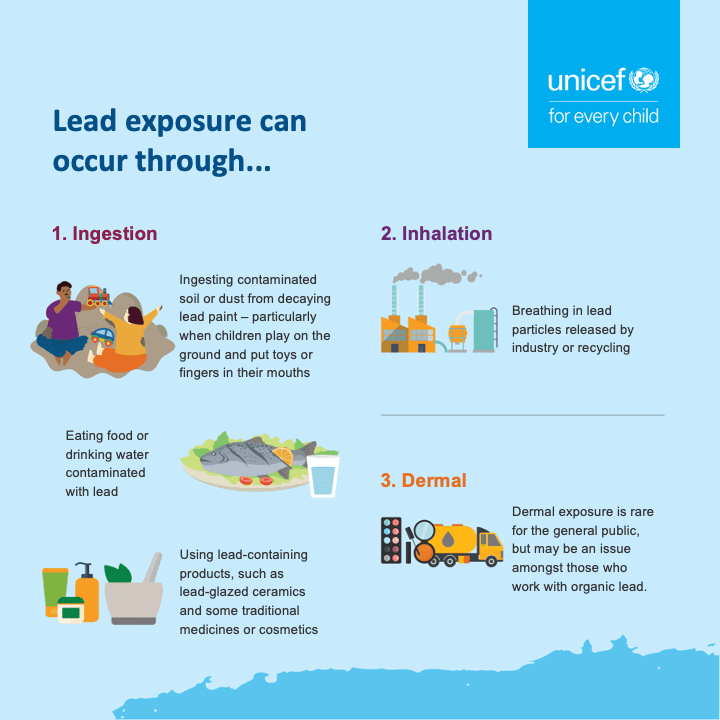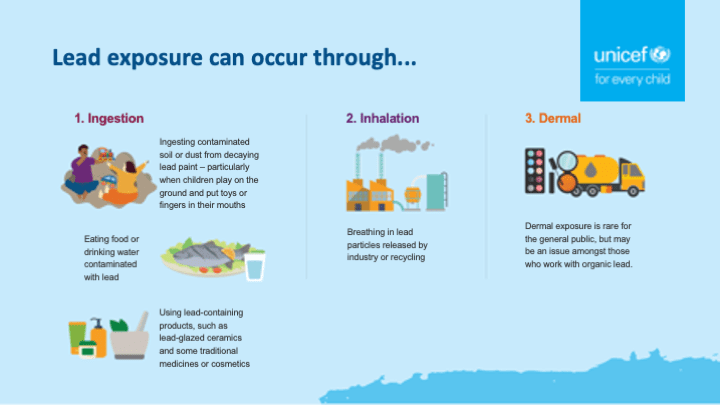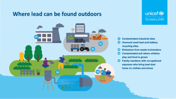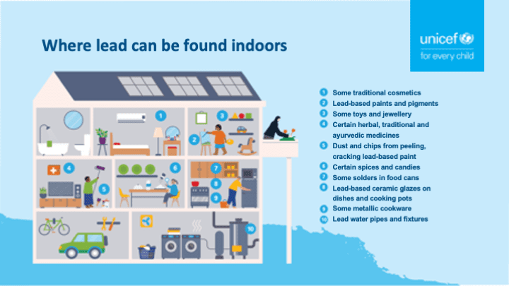 UNICEF has also created social media graphics for lead poisoning prevention, shown below. Right-click to save an image. Customizable PowerPoint versions are here.